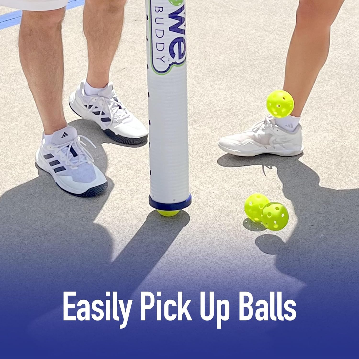 EASY PICKUP: You can pick up 16 pickleballs at one time without bending down. Pick up balls quickly and efficiently with ease. To pick up a ball, place the Bowe Ball Buddy over the top of ball and press down. Picks up indoor and outdoor balls.