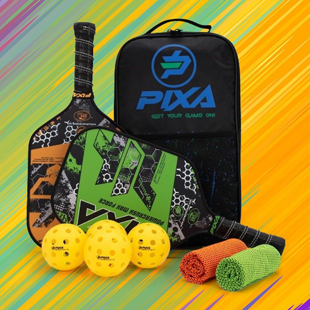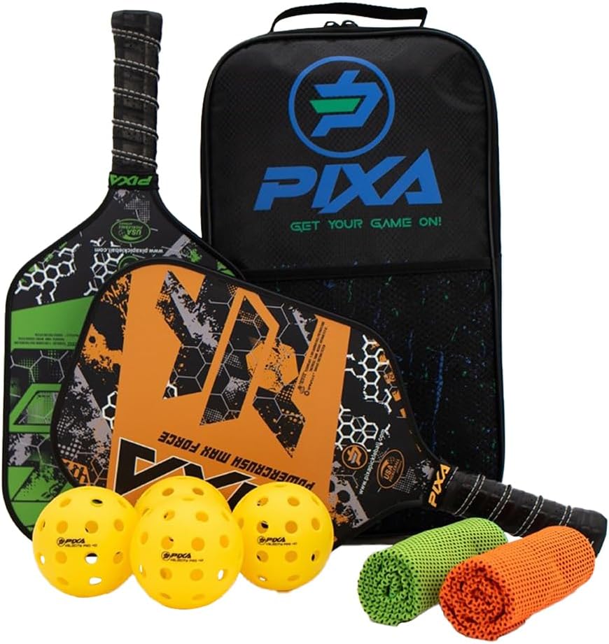 Premium Gift Pickleball Set of 2: The Powercrush Max Force Pickleball Paddle Complete Set of 2 – the gift that keeps on giving, even if the recipient is new to Pickleball! In addition to the two paddles, you also get four professional yellow outdoor PIXA Velocity Pro Pickleballs, 2 Cooling Towels, and a stylish Oxford Cloth Pickleball bag. This Pickleball paddle set is great for a birthday gift, holiday gift, Mother’s Day gift, Father’s Day gift, or just because you want to give the gift of fun!